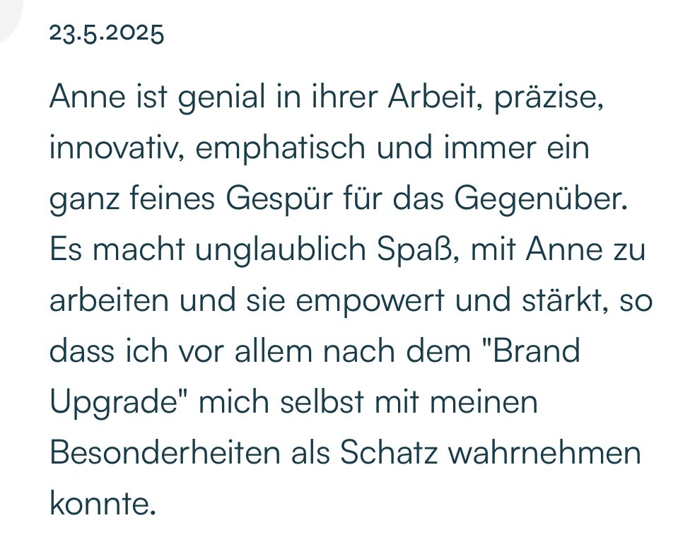 Deine Personal Brand ist nicht dein Logo. Sie ist dein Selbstbild, deine Haltung, deine Art zu denken, zu führen und Entscheidungen zu treffen. Und genau das entscheidet darüber, ob du vergleichbar bleibst oder als erste Wahl deiner Wunschkundin wahrgenommen wirst.