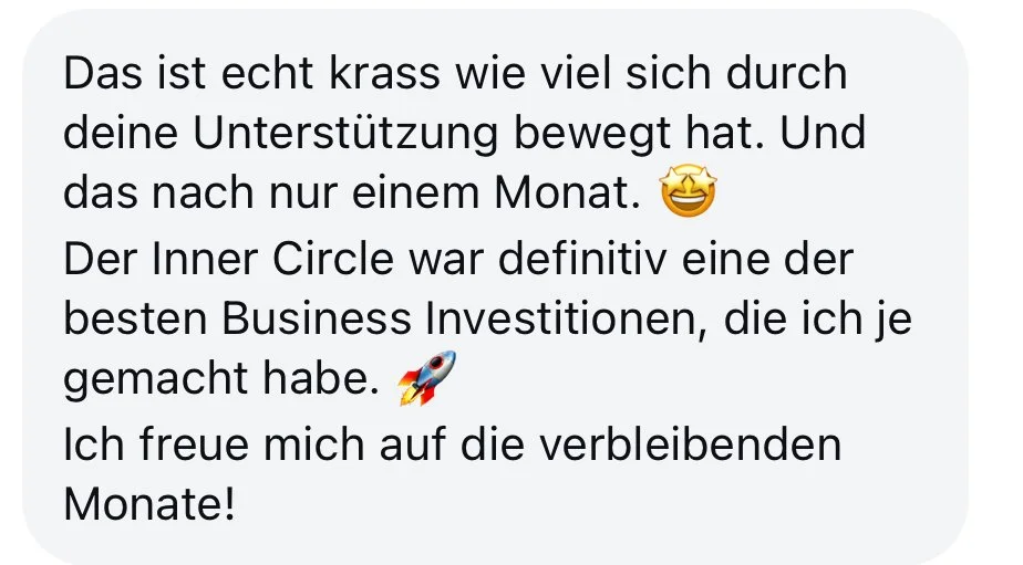 Im Inner Circle entwickelst du keine Strategie von der Stange. Du triffst Entscheidungen, die dich zeigen. passen zu deiner Energie matchen. Die funktionieren, weil sie zu dir passen.